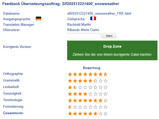 Mit der Feedback-Funktion kann der Übersetzungsmanager feststellen, ob der Kunde mit dem Service zufrieden ist. Wenn das Feedback nicht zufriedenstellend ist, können sie den Übersetzer oder das gesamte Team austauschen.