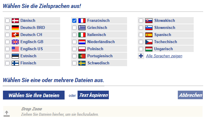 Abbildung 1: Auswahl der Zielsprachen