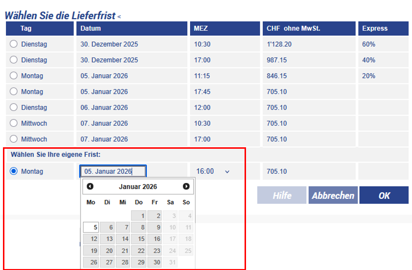 Abbildung 3: Der Kunde kann seine eigene Frist wählen