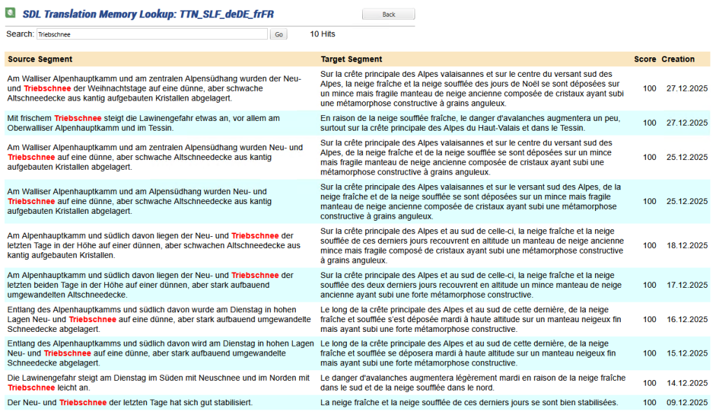 Dank der Konvertierung ins HTML-Format und der Volltextindizierung kann der Benutzer alle aktuellen und ausgeführten Übersetzungen schnell und einfach finden und abrufen.