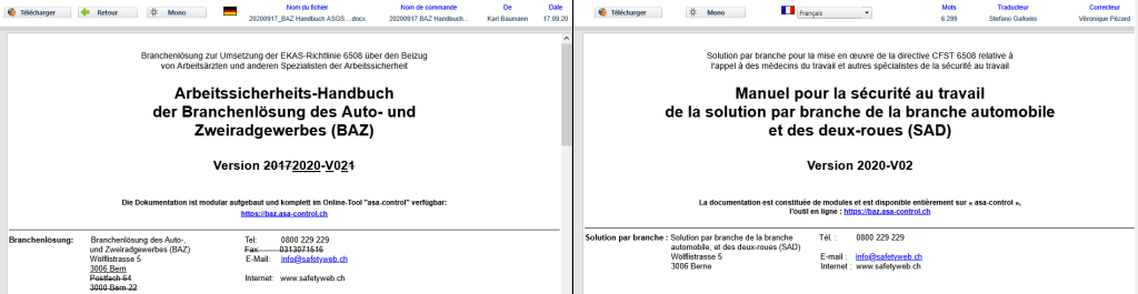 Le client peut télécharger une version révisée. L’ancienne version sera remplacée dans les archives, et le traducteur et le relecteur recevront par courrier électronique un récapitulatif de toutes les modifications. Le nouveau fichier est intégré dans la mémoire de traduction – cette procédure est expliquée plus loin.