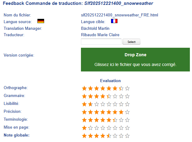 La fonction de retour d’information permet au responsable de la traduction de savoir si le client est satisfait du service. En cas d’insatisfaction, il peut changer de traducteur ou d’équipe.