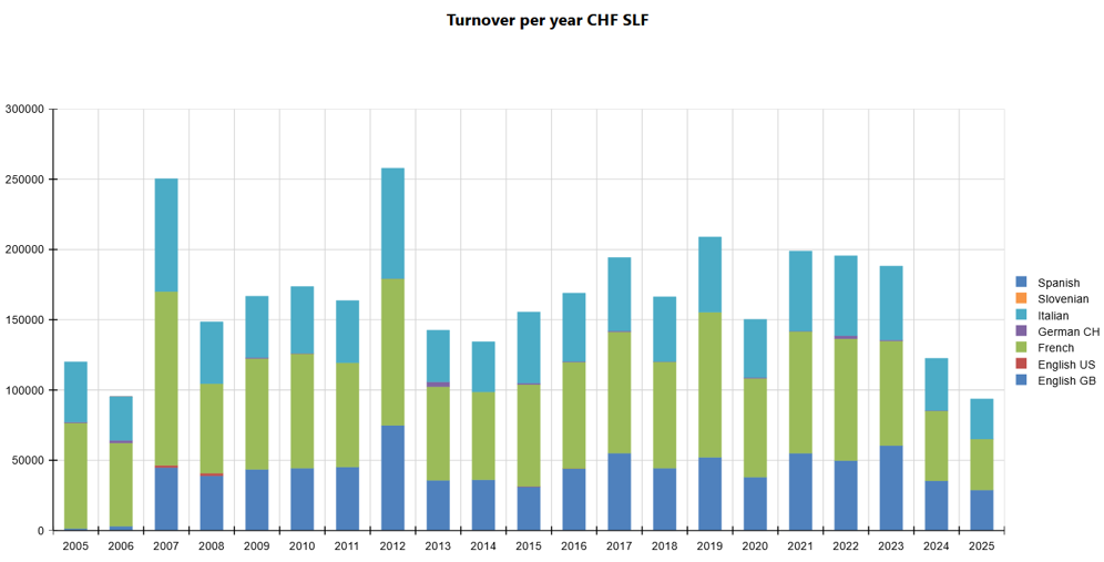Le système offre des statistiques par langue, par chiffre d’affaires et bien plus encore. Les factures – le cas échéant – peuvent être éditées et contrôlées en ligne.