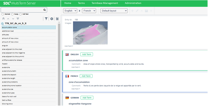 La base de données MultiTerm et ses entrées sont très importantes pour les traductions automatiques, car les termes sont exportés vers DeepL et d’autres fournisseurs. Le client peut ajouter des termes et en rechercher directement dans sa base de données. Un lien vers la base de données est ajouté dans le courrier de livraison, ce qui permet d’affecter la prochaine traduction.