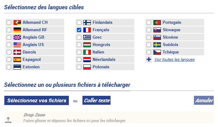 Lorsque le client souhaite commander une traduction, il lui est demandé de sélectionner la langue cible.