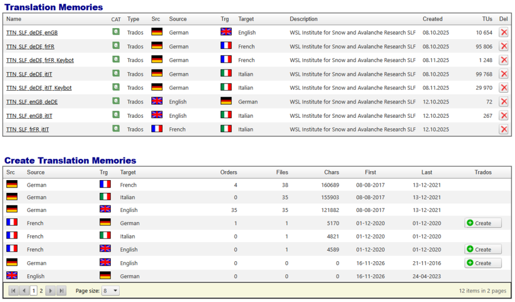 Administrators or translation managers have full control over all translation memories and termbases. They can manually create, modify, or delete TMs and TBs and adjust their structure (for example, by adding or modifying fields and metadata) and content. The system also supports importing and exporting TM/TB data for backup, migration, or integration purposes, giving the organization flexibility in managing linguistic assets.
