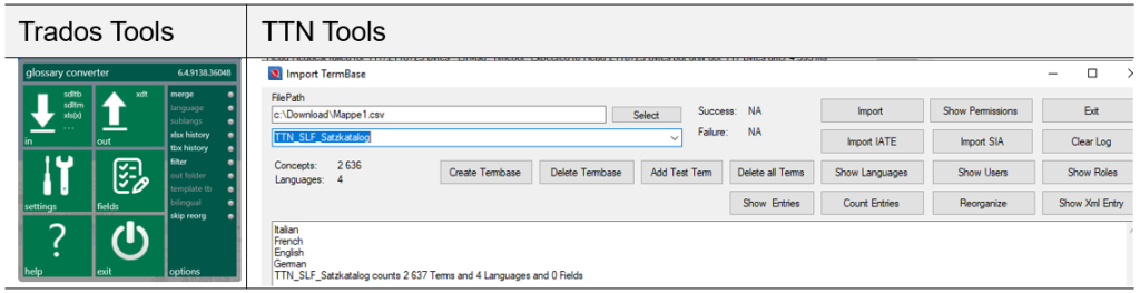 Figure 3: Custom TTN termbase and TM import tools vs. Trados tools